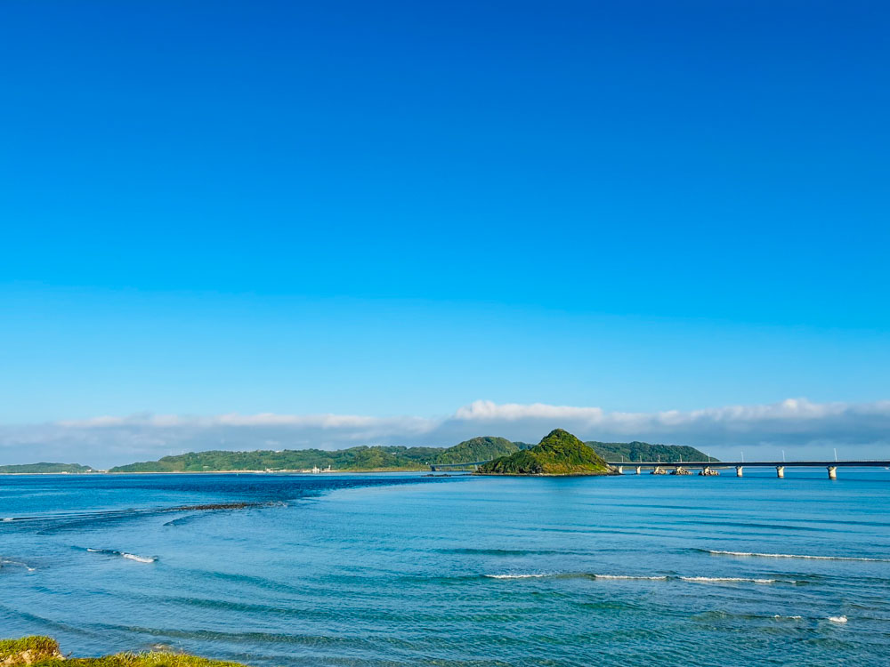 ホテルの食堂側から砂浜に行けるようになっていて、そこから見る角島大橋が凄く綺麗でした✨