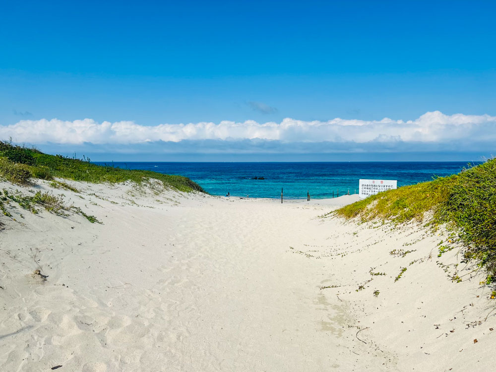 角島の灯台から見える海が綺麗だったので海水浴場に向かいました。
