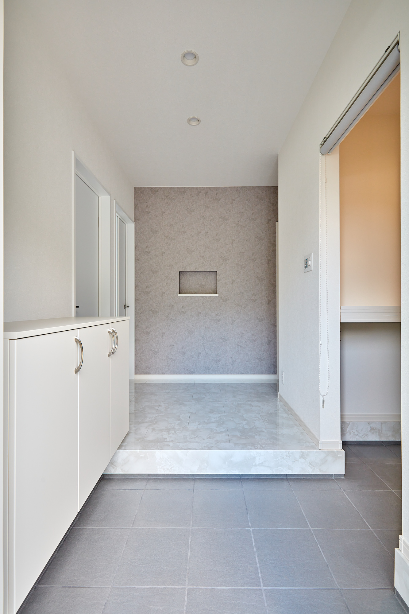 入ってすぐ目につく玄関正面に、写真やディフューザーなどを飾れるスペースを設けました!