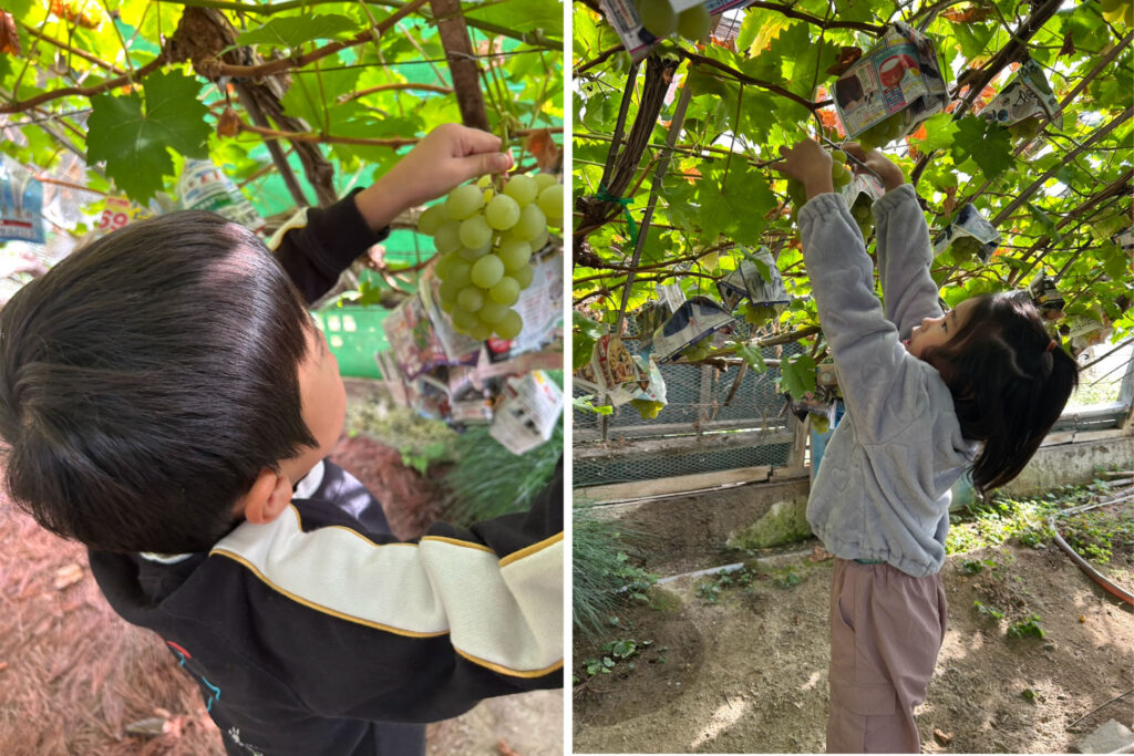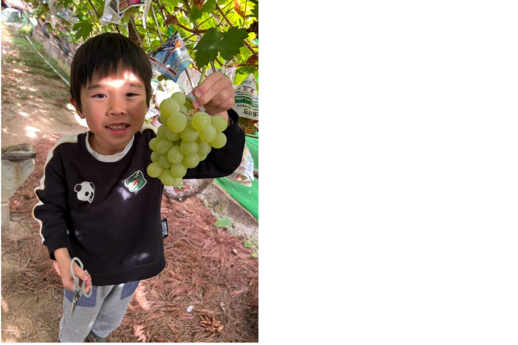あとは、奥さんの実家で子供たちは「マスカット」を収穫したりと
