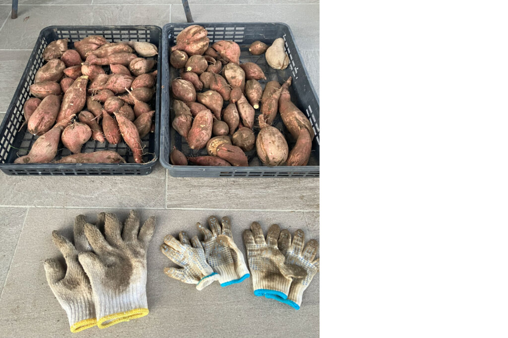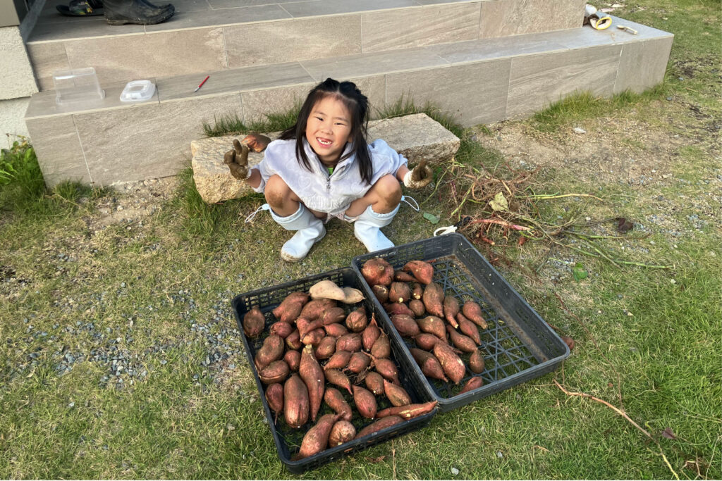 さて、現在この放浪記を書いている季節は秋でございますが、先日家の庭に植えた「安納芋」の収穫作業を家族で行いました!