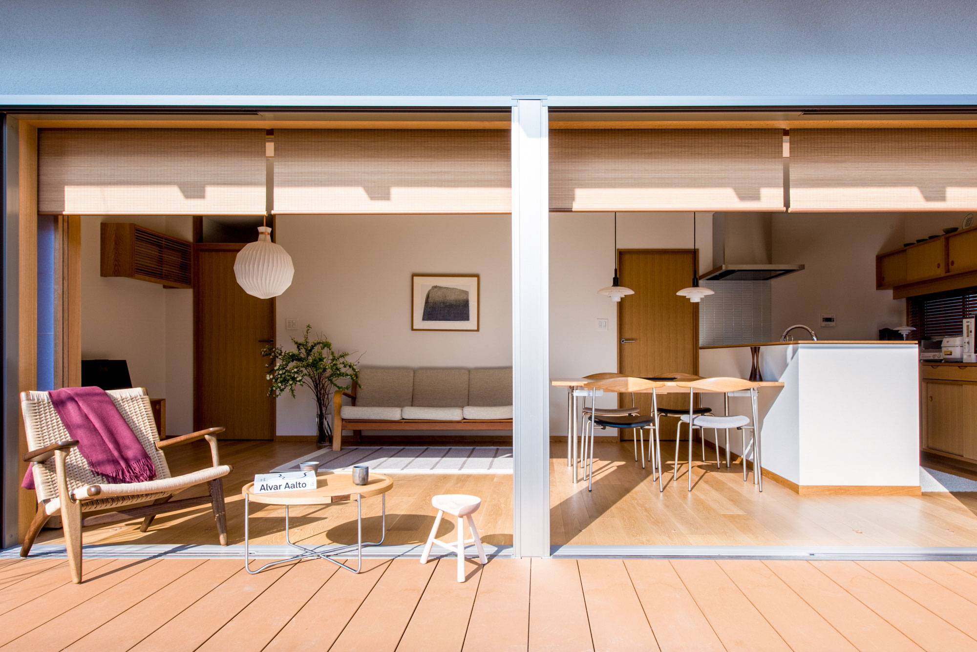 LDKと併設されることが多いウッドデッキは室内に大きな窓があれば、部屋との繋がりを感じられて広々とした雰囲気を作り出すことができるよ!
