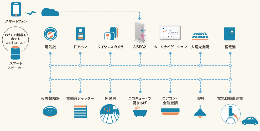 照明器具だけでなくエアコンやエコキュートなど周辺機器まで操作できるようにしたものが「AiSEG」(アイセグ)です。