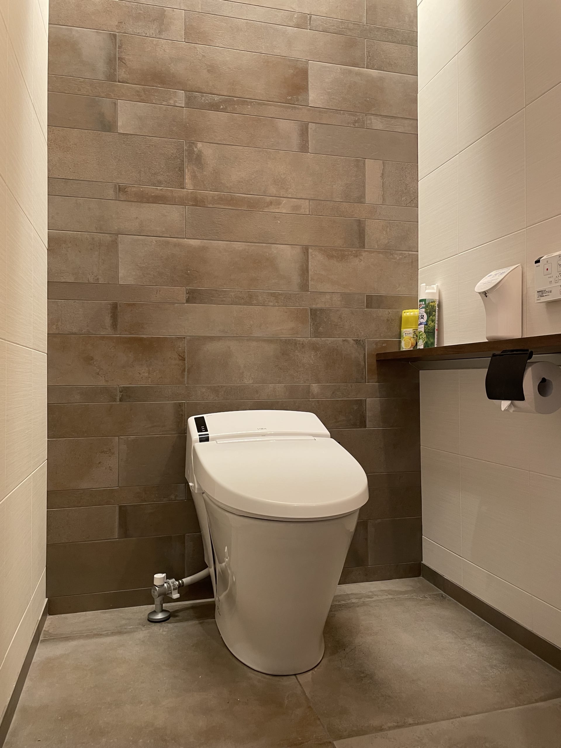 トイレ背面で使用しているタイルが個人的にはとても好みです(^^)
