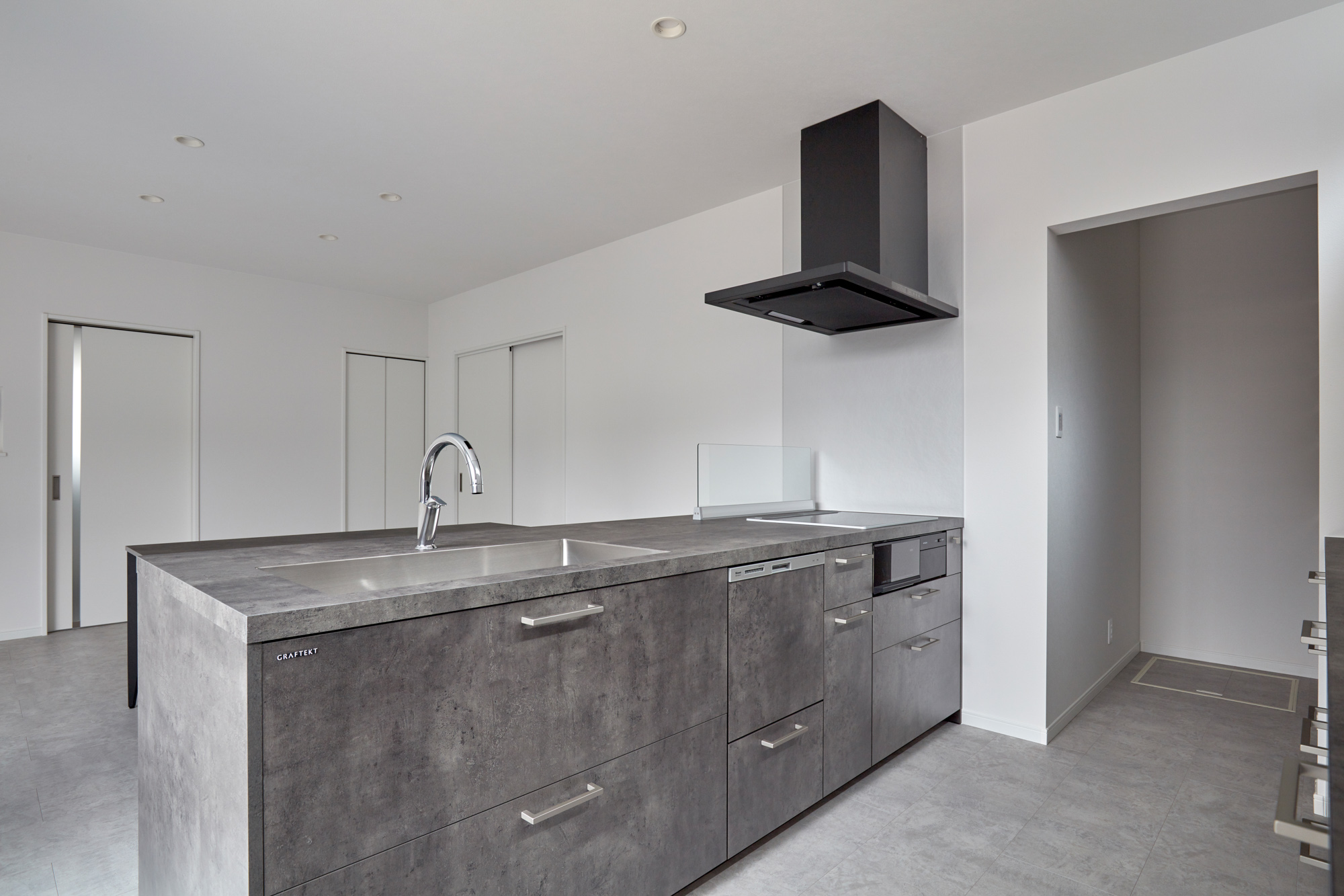 もし、お客様が来た際に目隠しをしたい場合は下がった壁の部分にロールスクリーンなどをつけるが可能です。