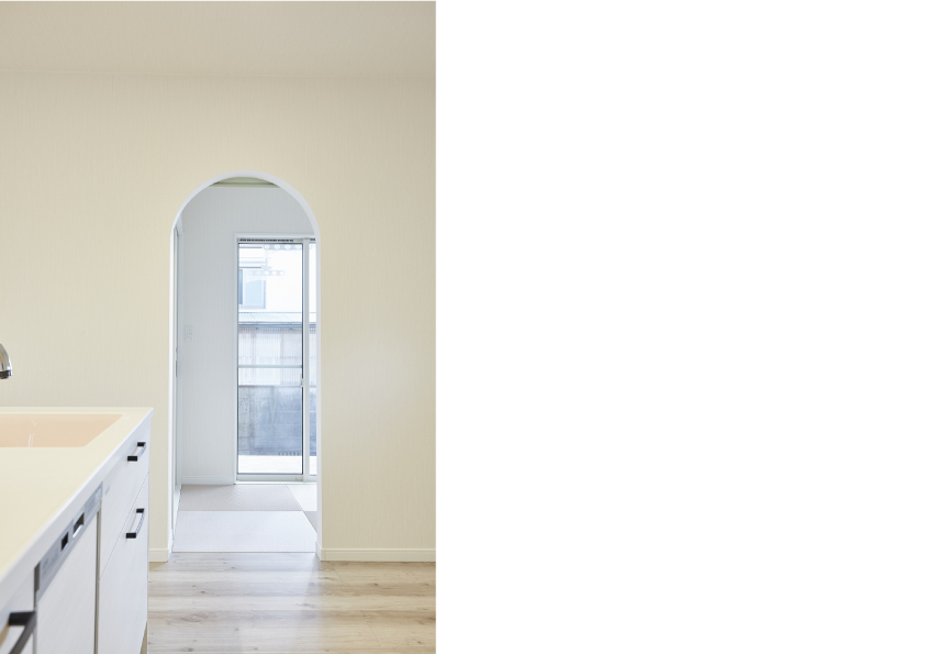 R型にすることで、ただの垂れ壁がアクセント代わりになり空間の雰囲気を変えてくれます。