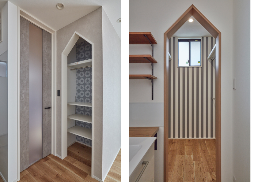 建具をつけることなく部屋と部屋の空間を仕切ることが出来、ひのき住宅では、土間収納やクローゼットなどにつけることが多くあります。