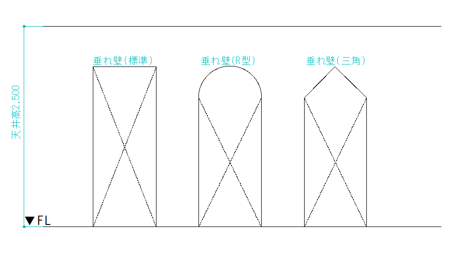 別名下がり壁と言って天井から500㎜ほど壁が下がっているものになります。
