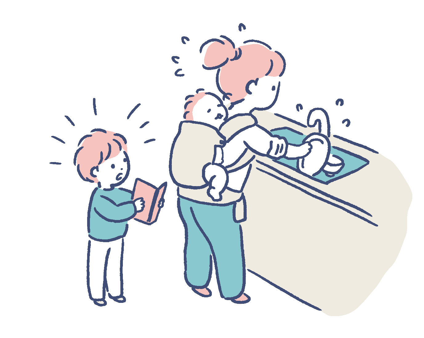 この3つがまとまっていて、さらにお子さんの宿題チェックやゴミの分類、お子さんのお風呂や歯磨きなども同じ動線上でできることが望ましいといえるね!