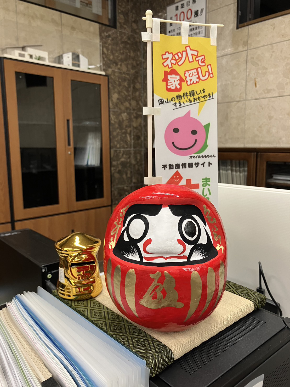 最上稲荷の初詣で、今年は目標成就を祈願しダルマを購入し不動産部デスクに飾っております!
