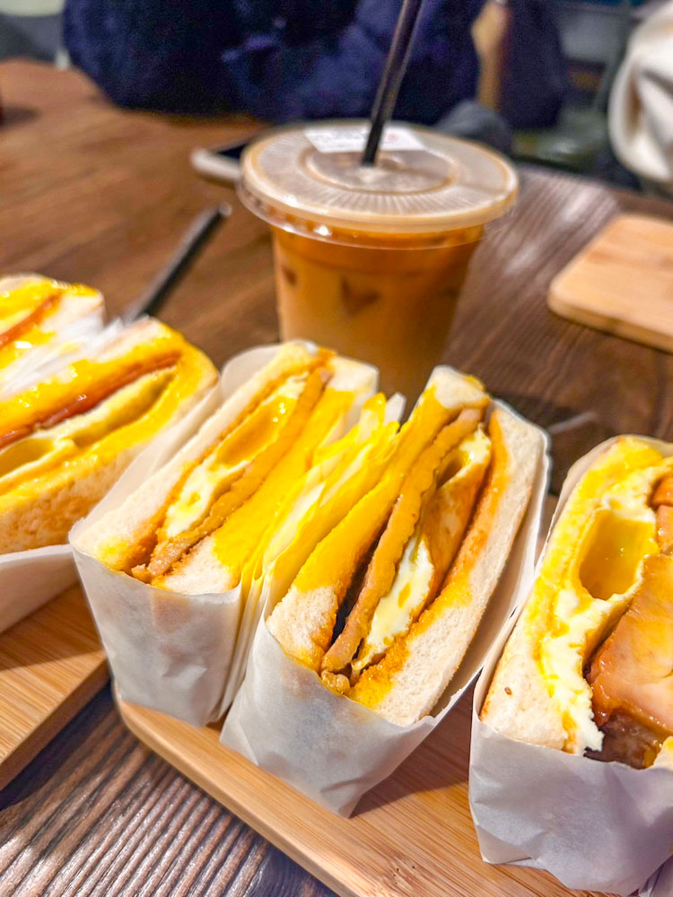 とろ~り卵のサンドイッチ(ピーナッツバターがぬっているものもありひと味違い甘じょっぱくて美味!!)