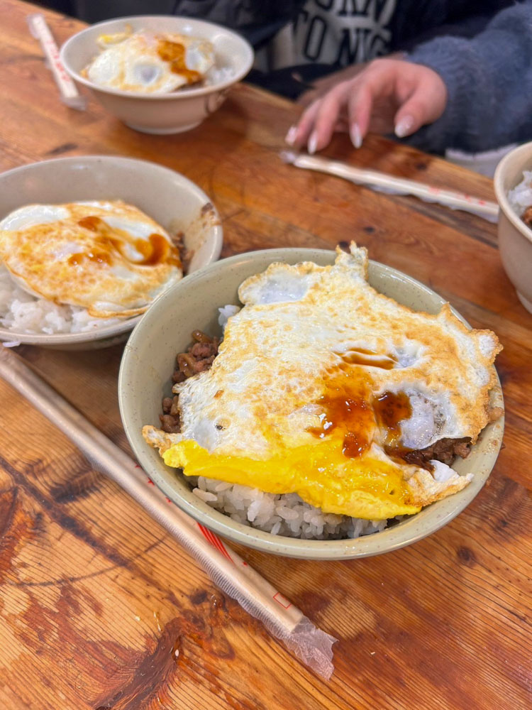 ※ルーローハン(大き目のそぼろ肉たれ、上に目玉焼きがのっています。こちらのお店は八角が効いていないので食べやすくてまた食べたい一品ですね。)