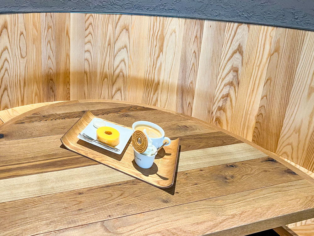 建物の中の造りも席もバームクーヘンの形をしていて面白かったです!!