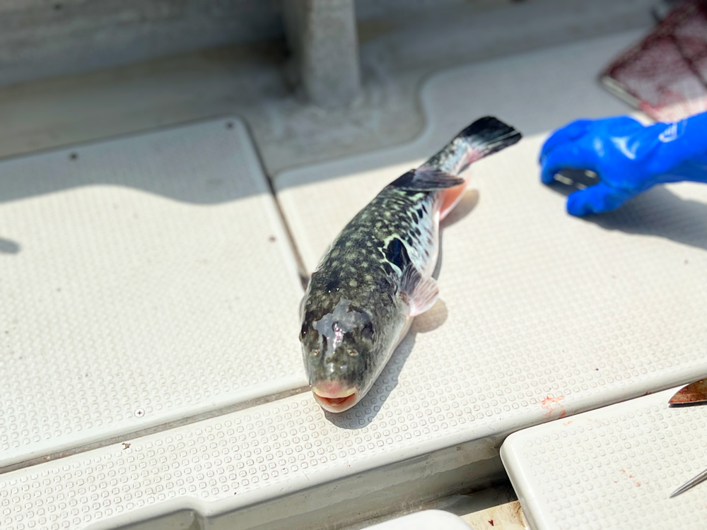 釣りを始めて早々、なんとトラフグが釣れました!!