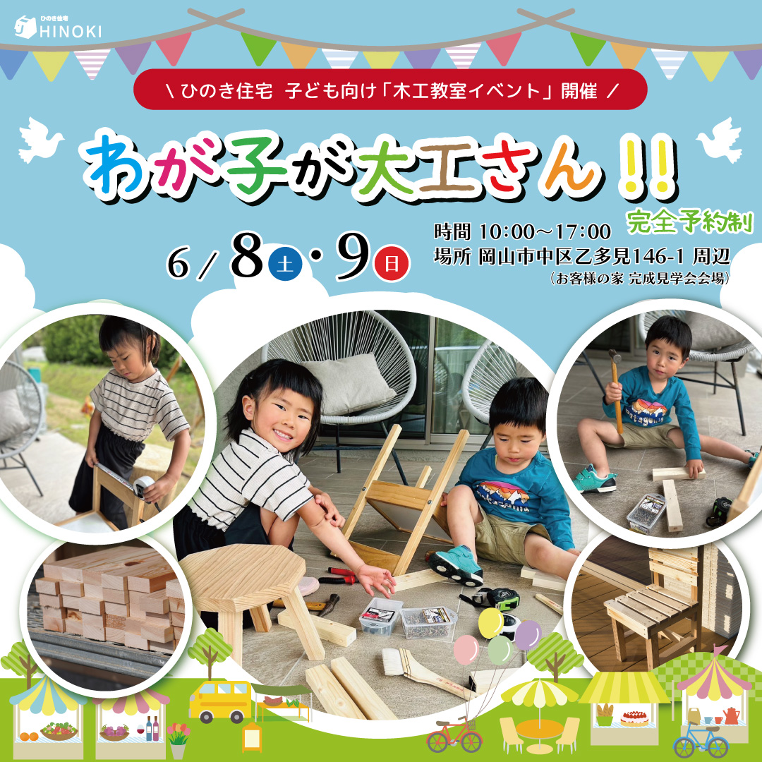 今回は見学会に加え、お子様も楽しめるイス作りワークショップも行います。