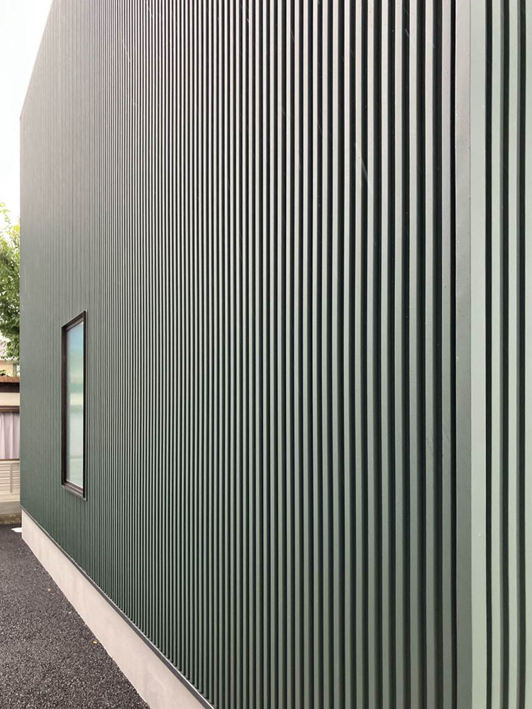 面積は80平米、外観はガルバリウム降板のKスパン張りで、モスグリーンの色合いが高級感を漂わせています。