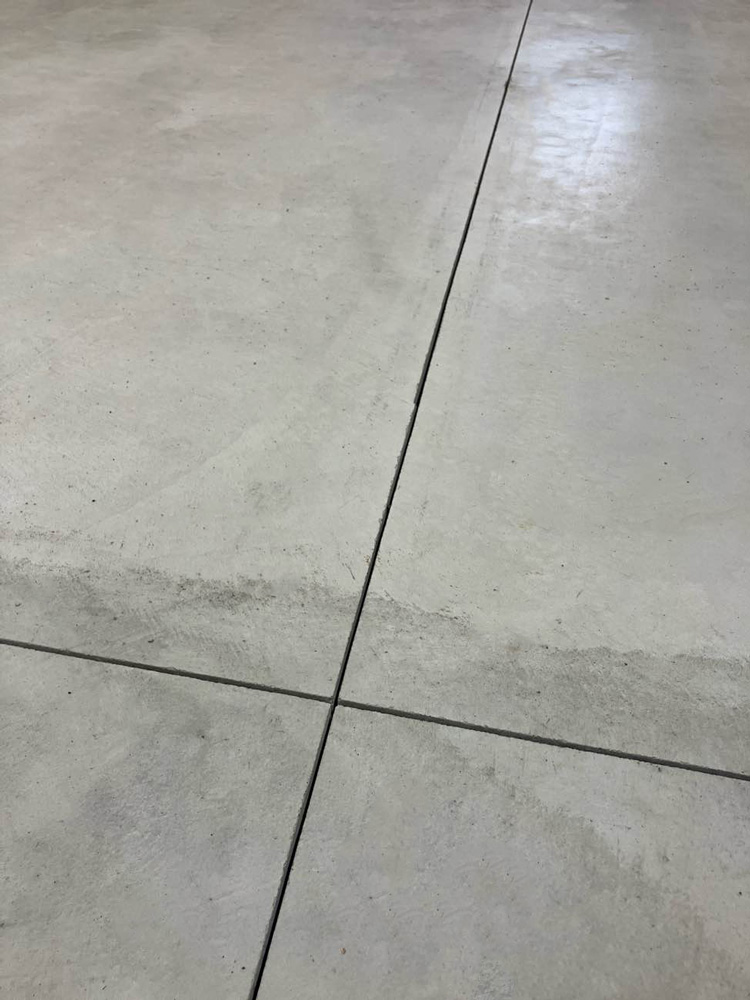 スラブにはコンクリートの割れを防止するため、カッターで目地を入れています。