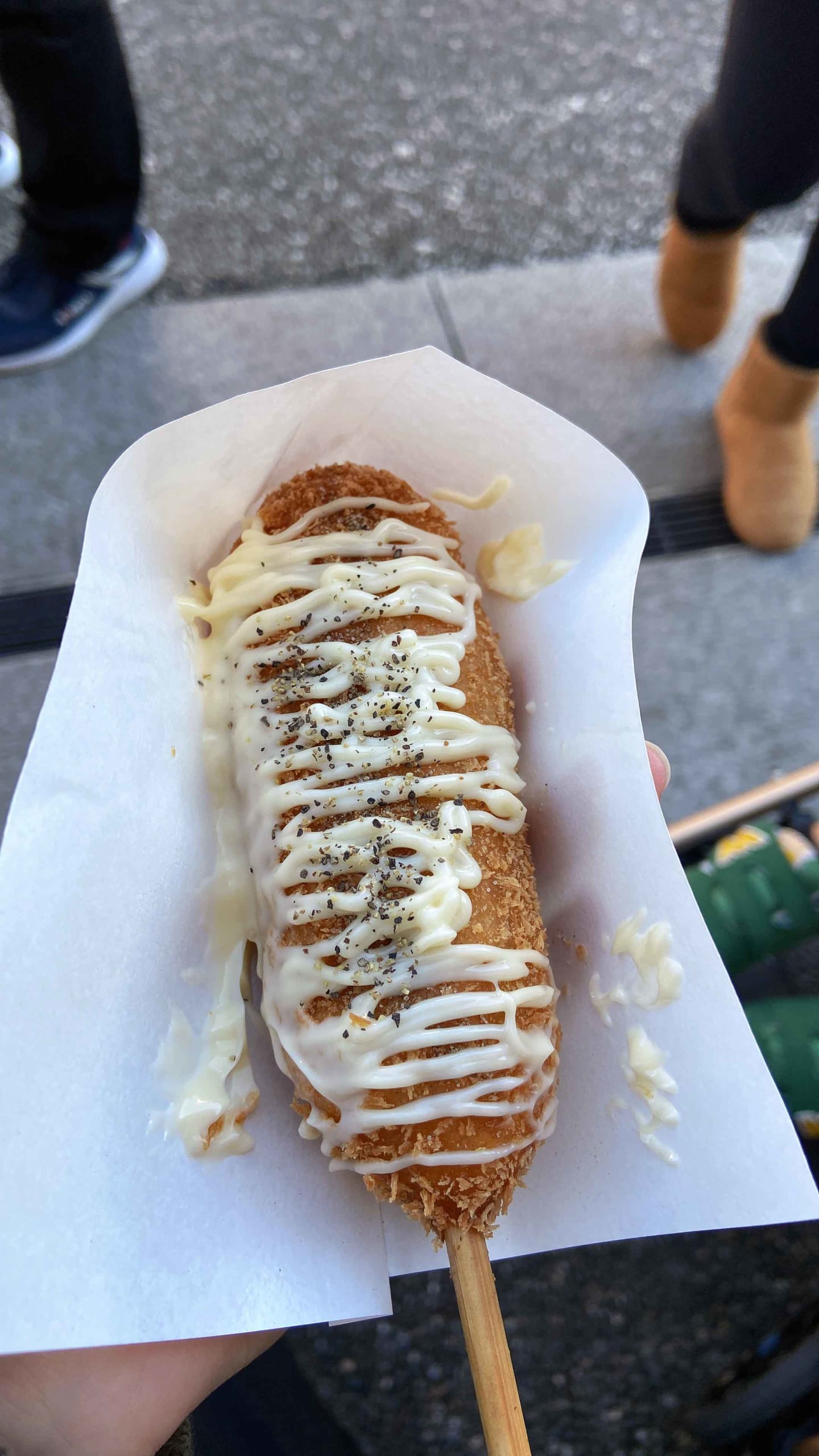 食後の〆に行く前にチーズドッグを頂いてから有隣庵に行きました。