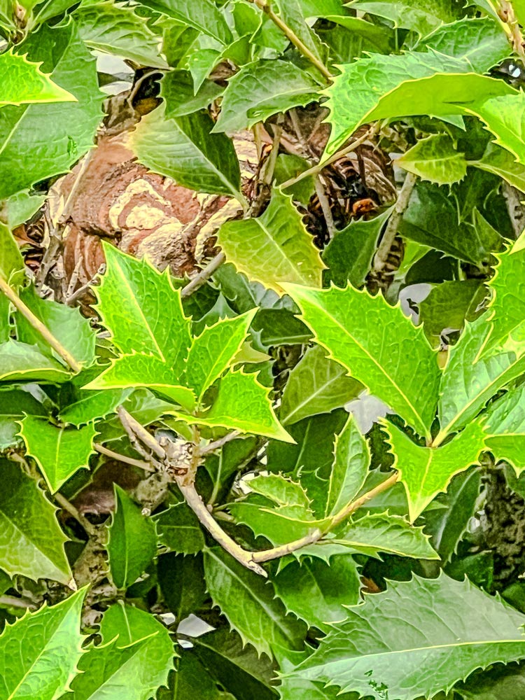 また、先日この猛暑で伸びきってる庭の草木の剪定をしてると突然蜂に囲まれて初めて蜂の巣の存在に気づきました。