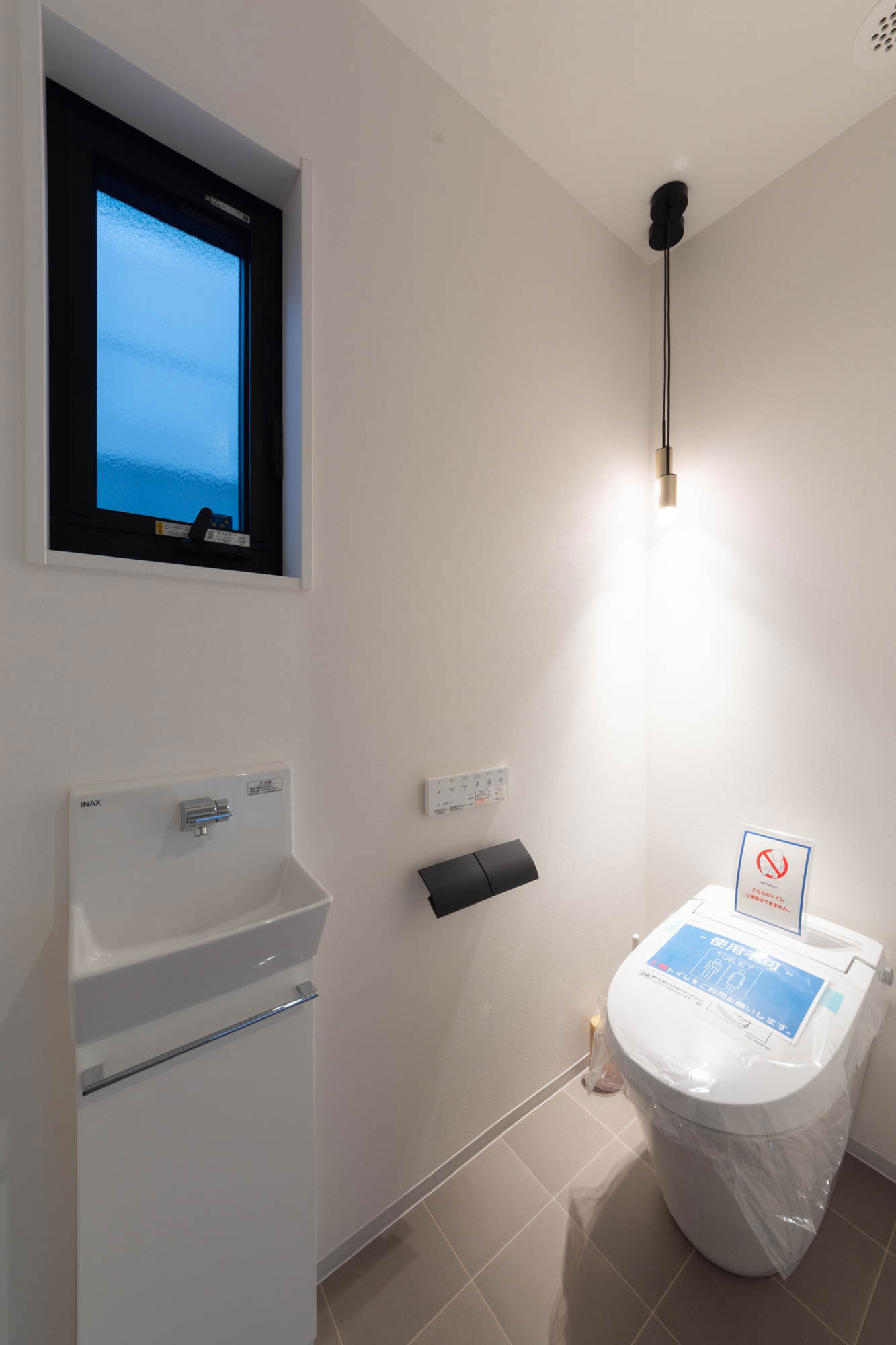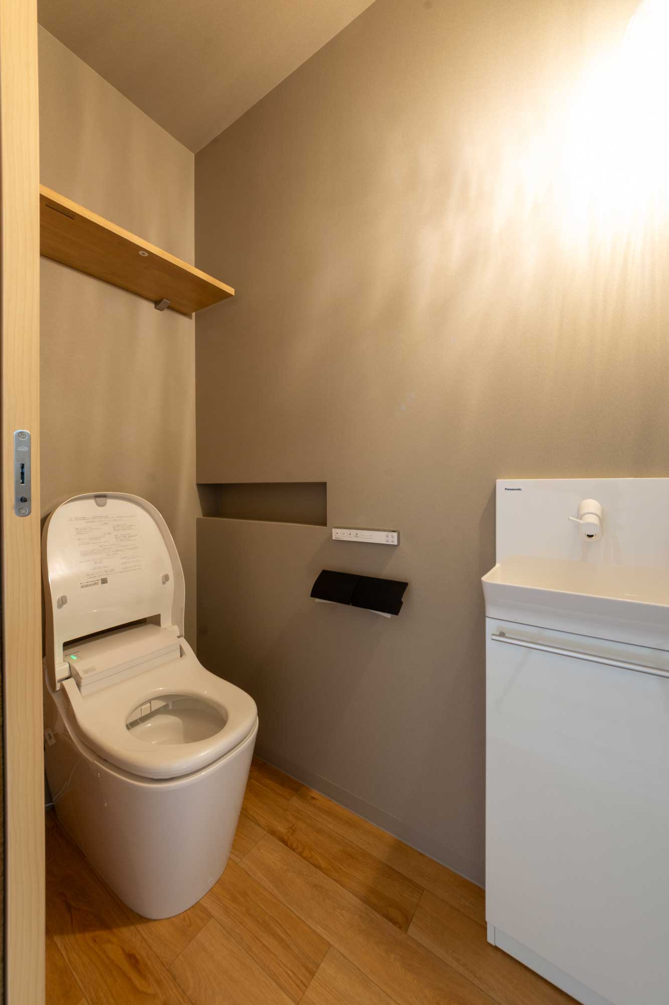 トイレ内に手洗い器を設けて、ボウル下にある扉内に収納していただけるようになっています。