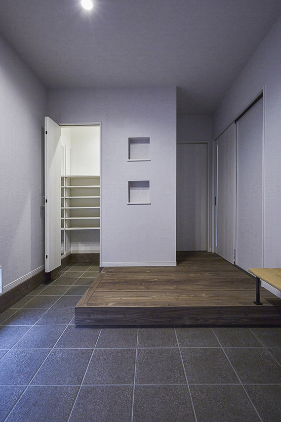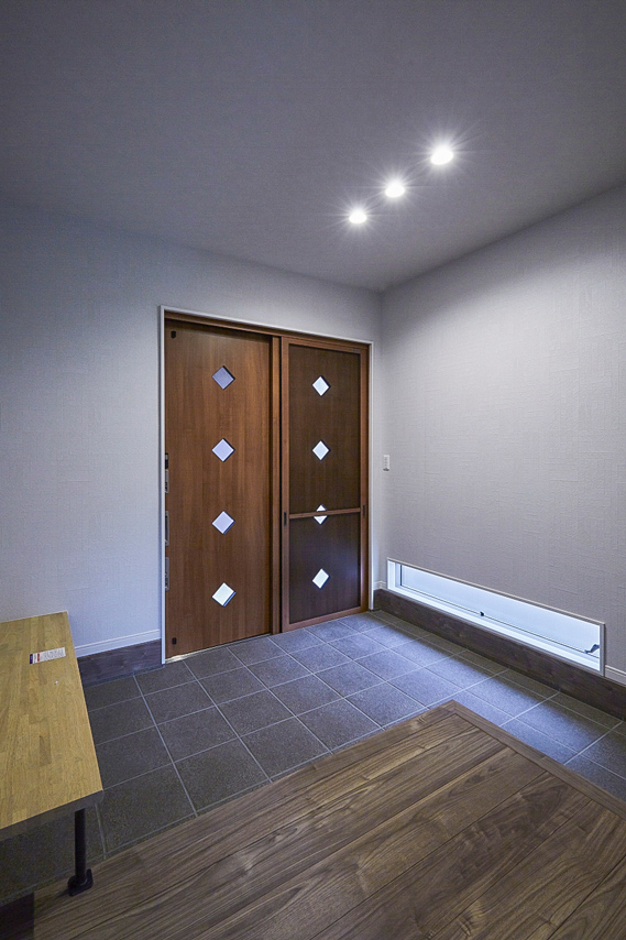 和室と連続した通り土間形式を採用されている玄関空間です。