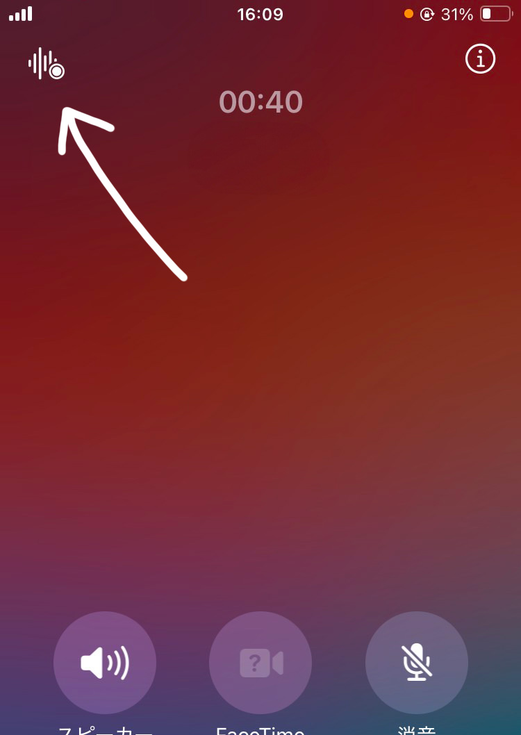 電話中に、左上のボタンを押すと、3秒後から録音ができるようになりました。