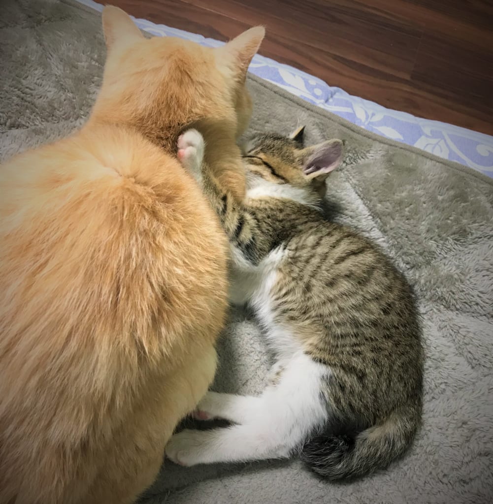 17歳になる愛猫が嫌がらずに寄り添ってあげている姿に気持ちがやさしくなりました。