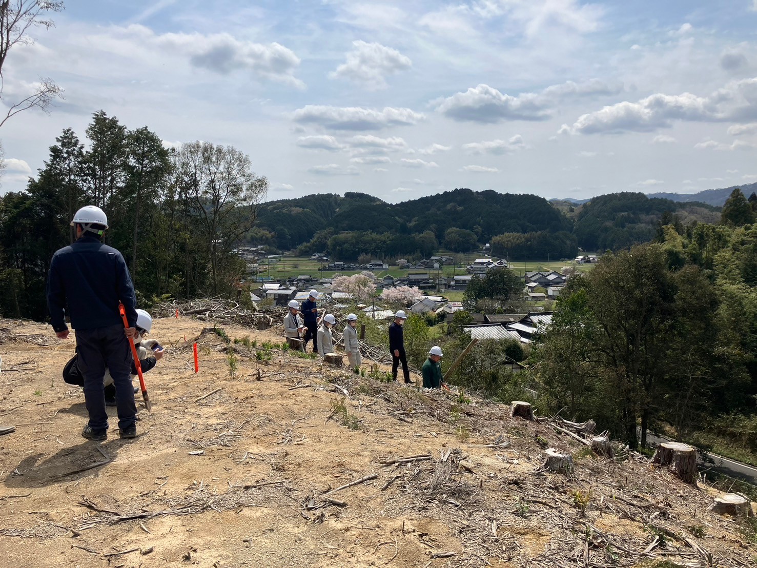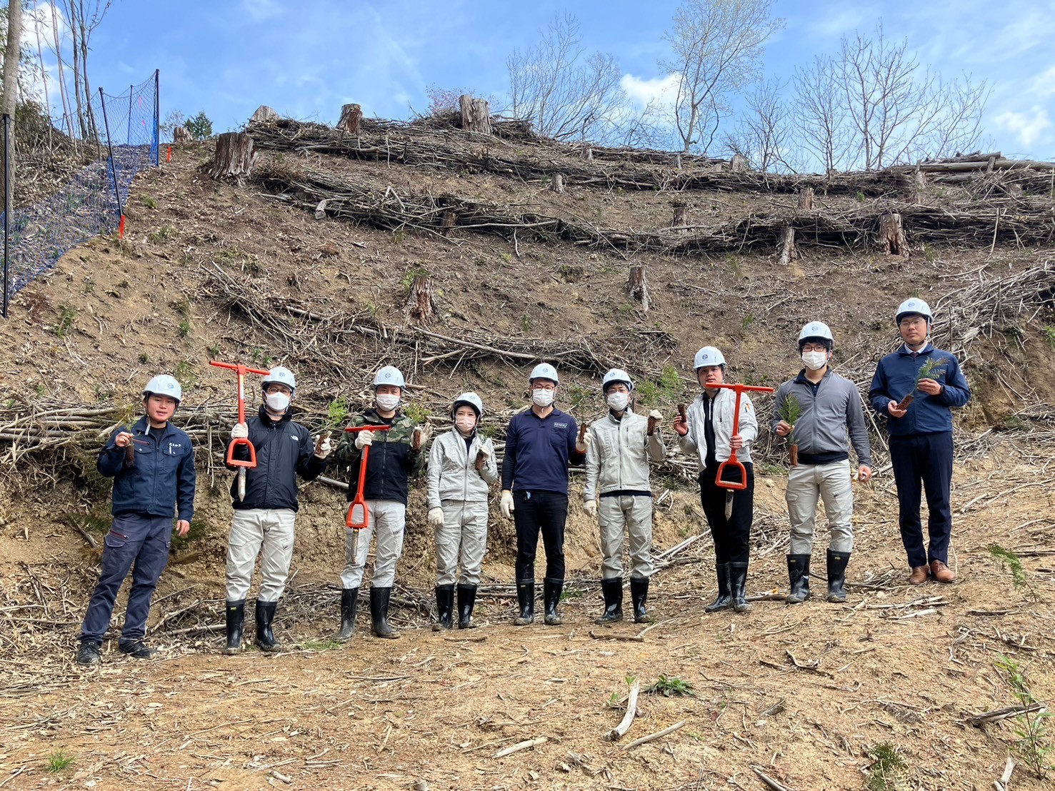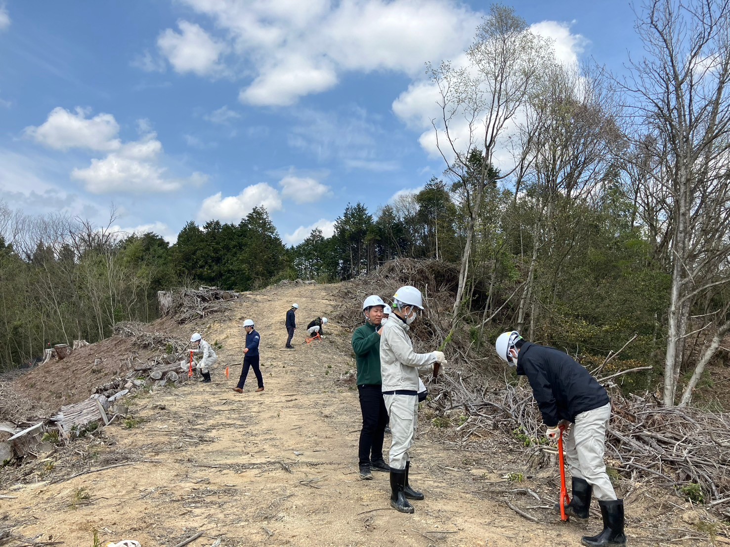今は土だけの、この光景も数十年後にはひのきの山になっているのかと思うと感慨深いものがあります。