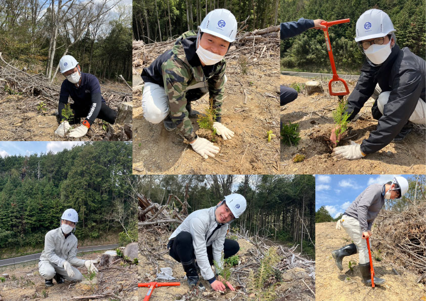 50年の歴史を噛みしめ切り倒した後は、次の50年へのバトンを繋ぐんだと言わんばかりに丹精込めて木の苗を植えていきます。