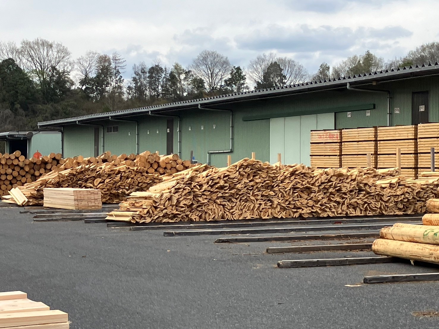 工場では伐採から選別、カット、乾燥、出荷までを一つの工場で行われます。