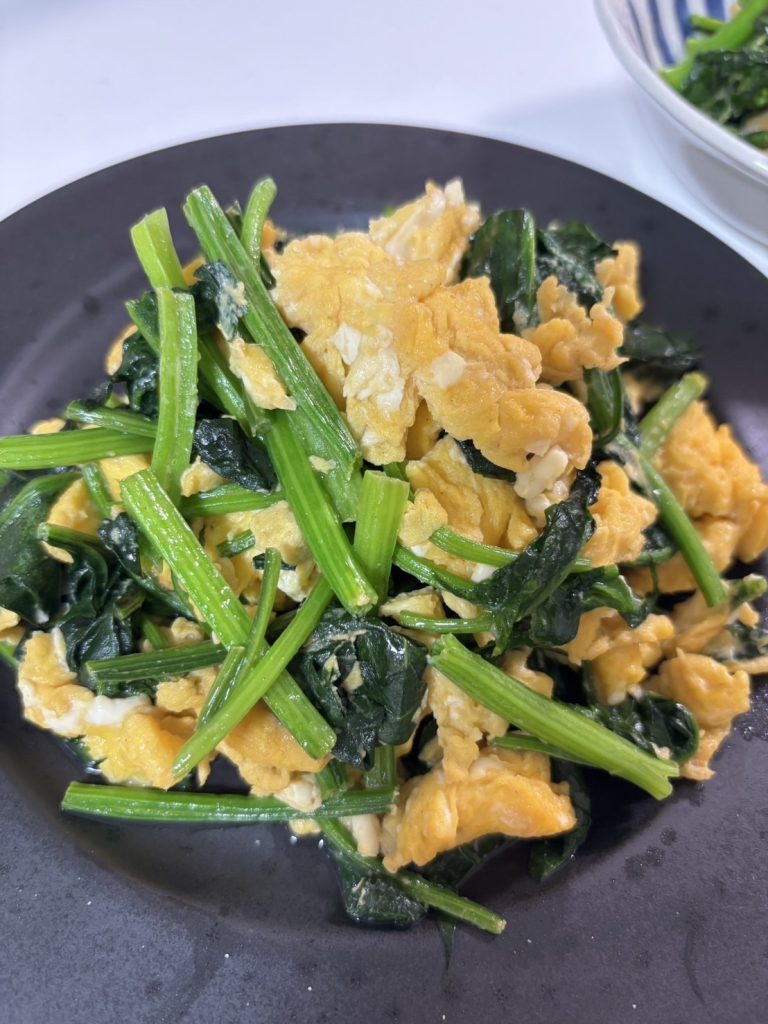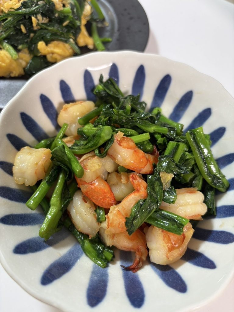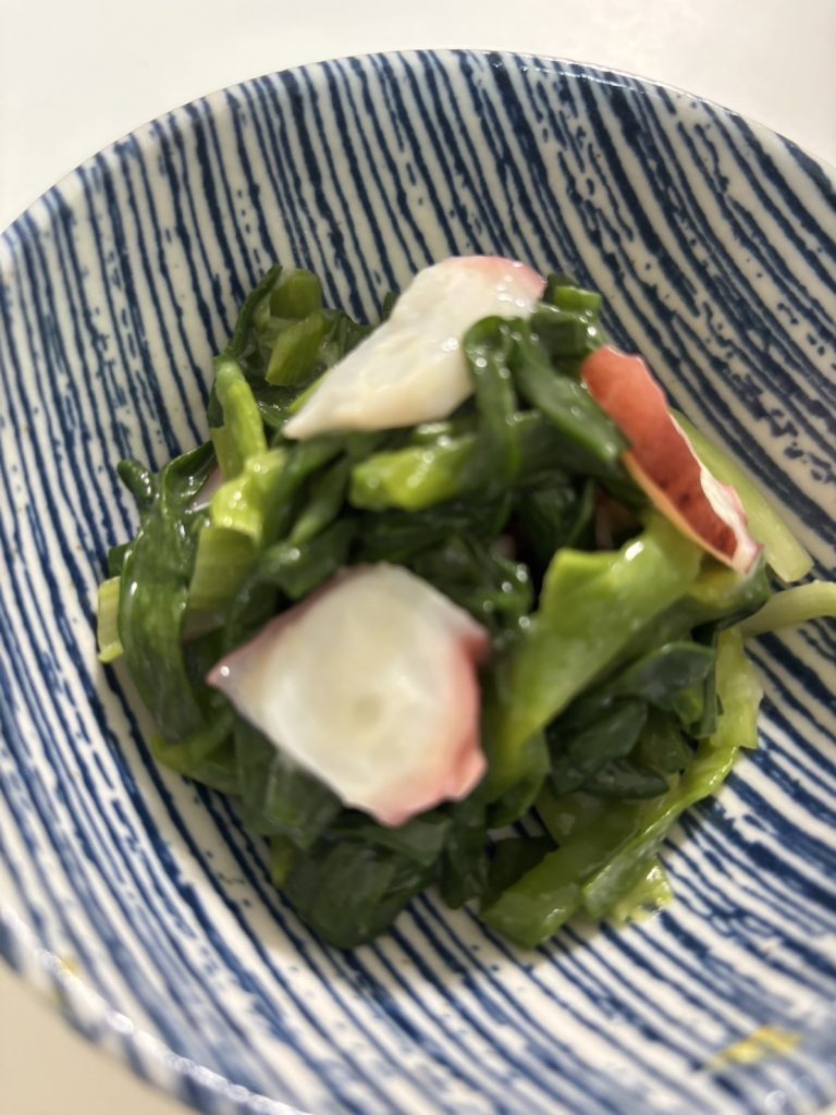 そのお野菜を【ぬた、エビと菜の花のバター炒め、ほうれん草の卵とじ】にしていただきました(*‘ω‘ *)