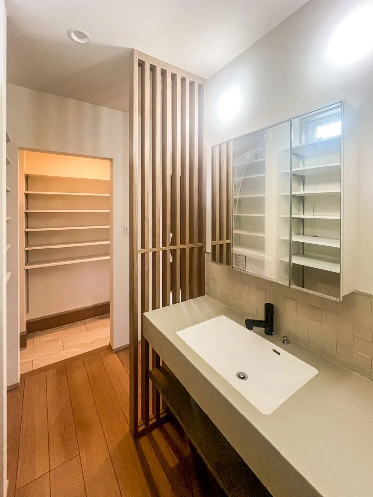 僕のお気に入りポイントは玄関から直結している洗面化粧台です。