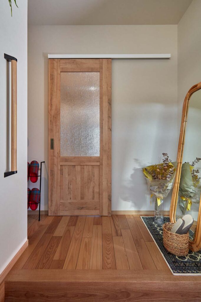 壁紙の色に扉の色も合わせれば建具自体の存在感が薄くなり部屋全体的にもすっきりとした印象になります。