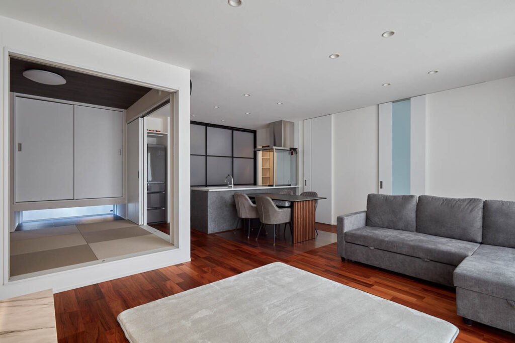 レールが天井に埋め込まれているためレールが全く目立たない為すっきりとした見た目になっています。