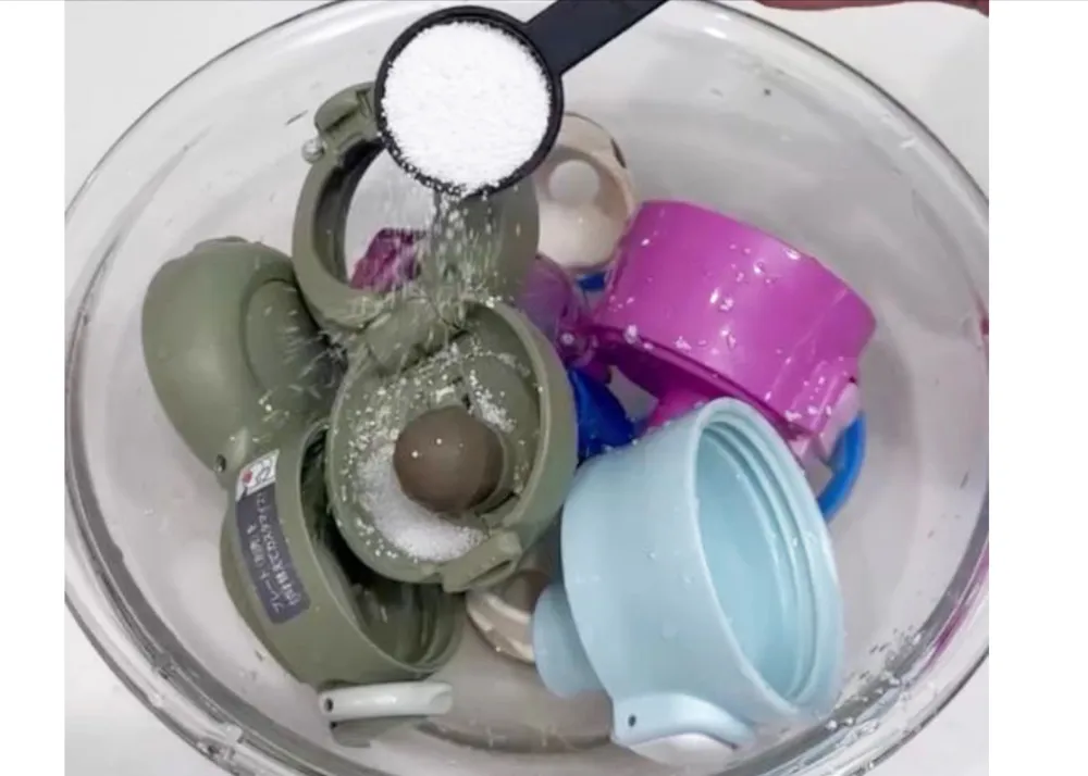 水筒のふたなども同じようにボールなどにつけておけば、汚れがごっそり落ちますよ!