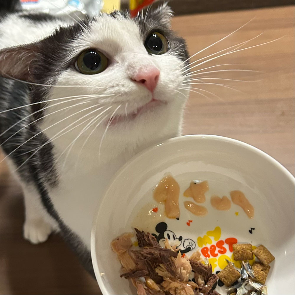 写真はないですが、美味しい時は「ンニャンニャ」言いながら目を閉じて食べるので、分かりやすくてかわいいんです🩶