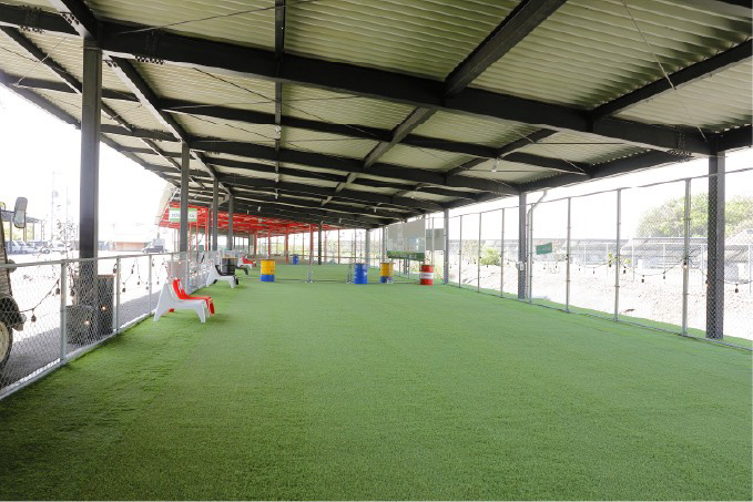 全面人工芝で、屋根もあり、快適に過ごせるドッグランで良く利用しています。