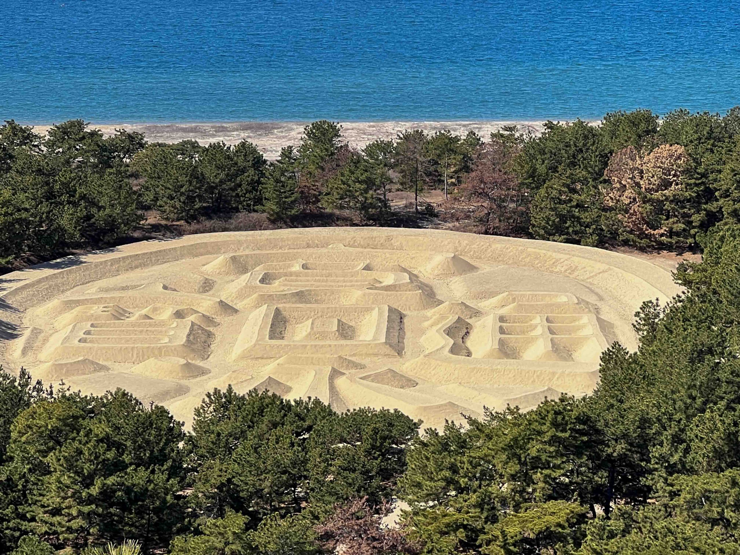実はこの砂絵、近くの小学校の生徒が形を整えてるみたいです。