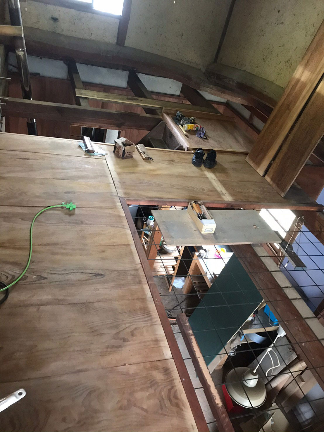 床の強度がズブズブで、何度か2階から1階に落ちかけたり