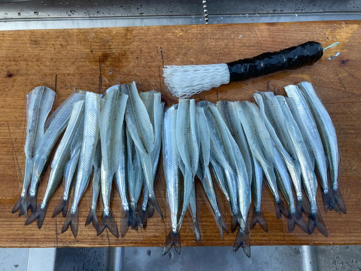このシーズンが終われば次は来年の6月です。そのころには体調30㎝超えのサンマ級になってます。刺身がウマいです。大きいサイズでも1日で50匹くらいは釣れます。