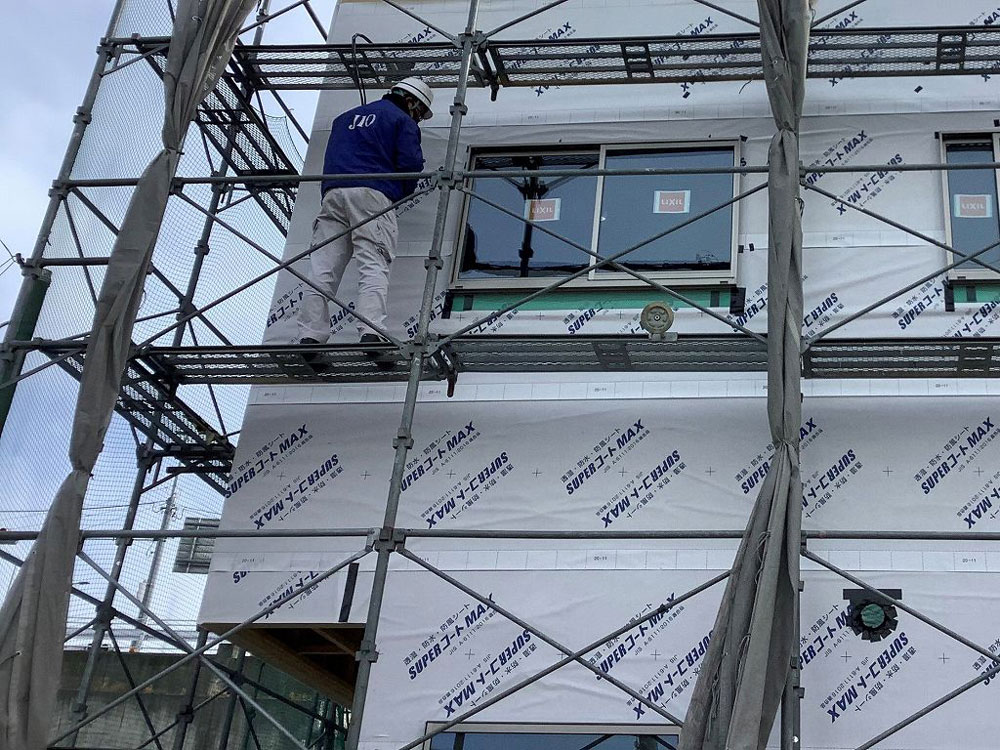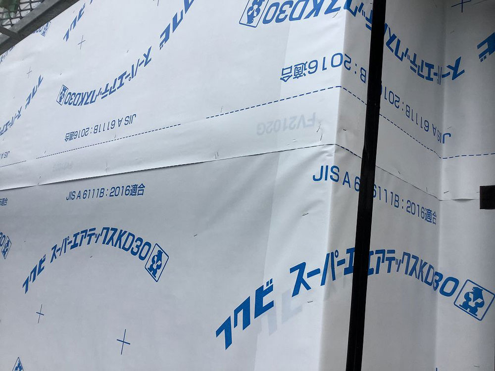 おもに、外壁材の下に張る外装下地(防水シート・防水テープ等)の施工状態の検査になります。