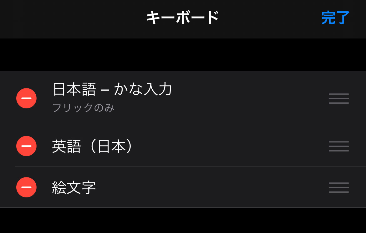 こちらも、「設定」、「一般」、「キーボード」の順に進み、更に「キーボード」から、編集で「絵文字」を削除しちゃいましょう。