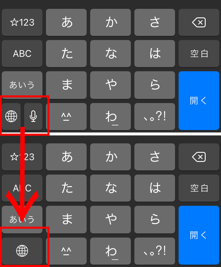 画像の様に、キーボード変換ボタンが大きくなり、間違って押してしまうことが少なくなります。