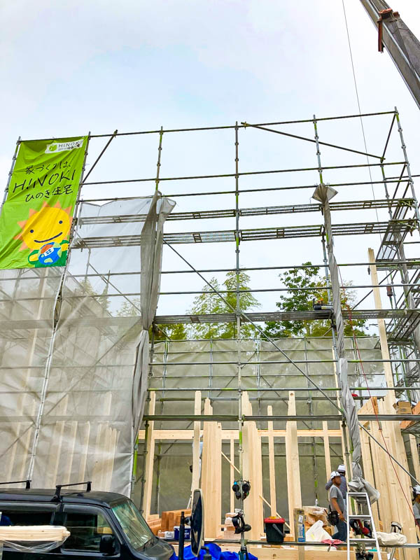 梅雨時期になり天気が不安定ですが、なんとか晴れて良かったです。 今、材料の輸入が困難な状況下で、ひのき住宅では土台・柱を桧の乾燥材『乾太郎』を使用しています。