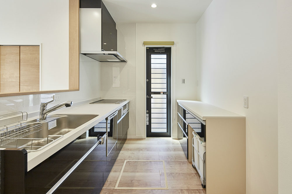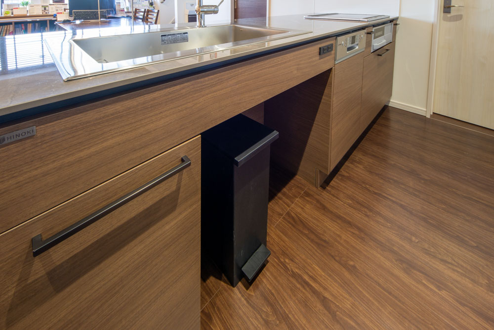 当社ブランド「ひのキッチン」ではシンクの下にゴミ箱スペースを設けているんだよ!