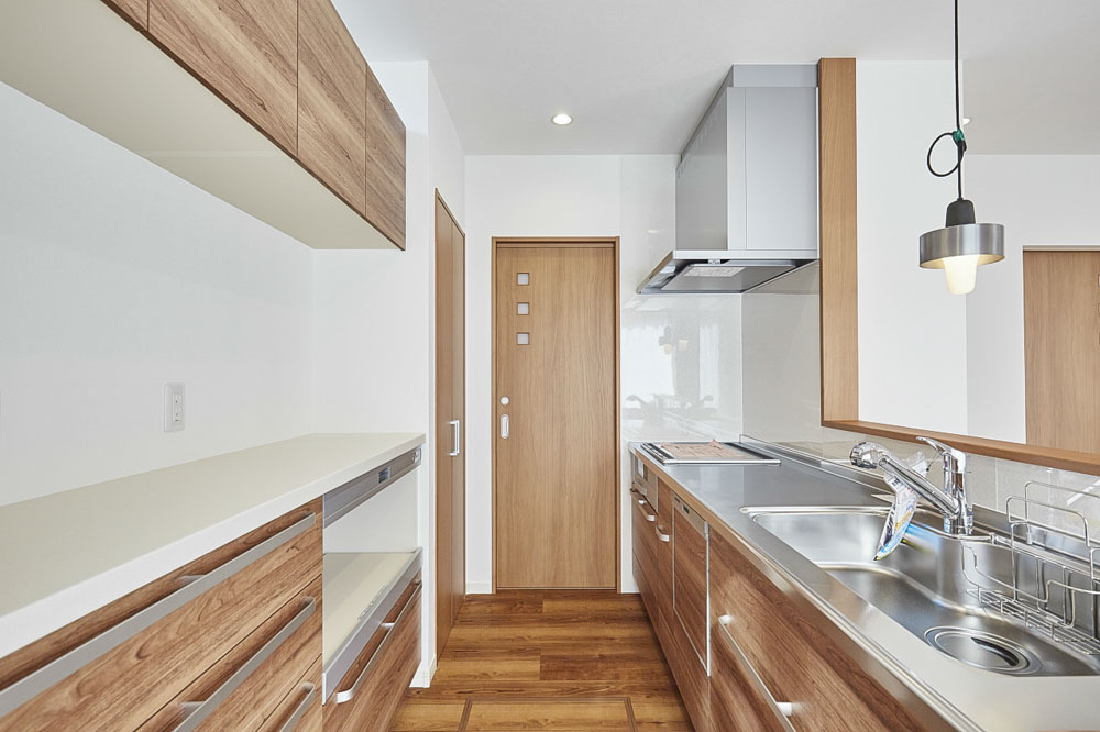 キッチンの計画では、キッチンの形や設備ばかりを考えてる方が多いんだけど、ゴミ箱のスペースを確保しておかないと、入居後にいざゴミ箱を設置する際に置き場に困ってしまう事もあるんだよ。