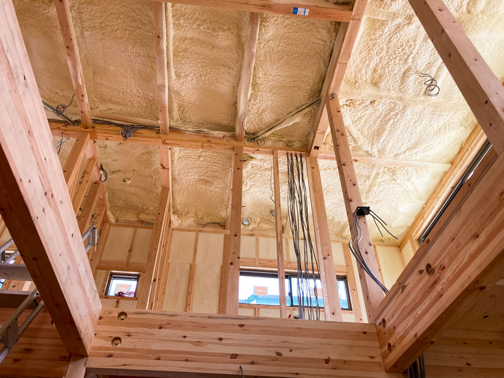 今回は吹付の断熱施工でしたので、特にこの時期は外気と内気の温度差が10℃近く違うのを体感できました。