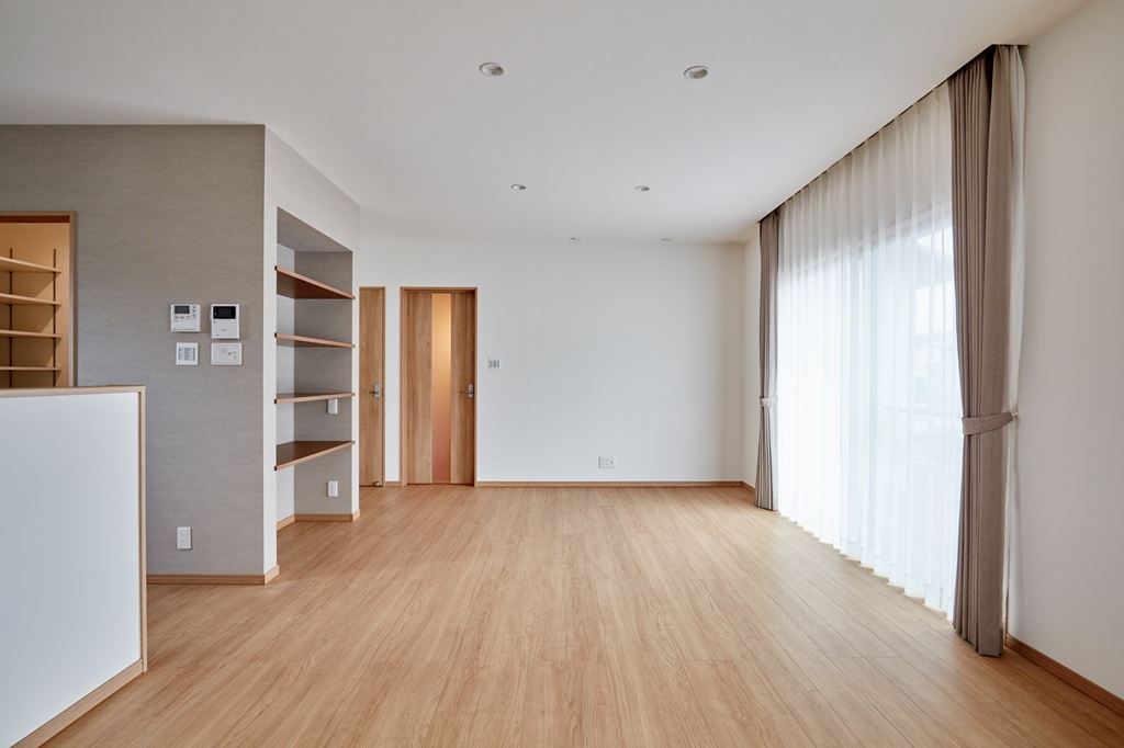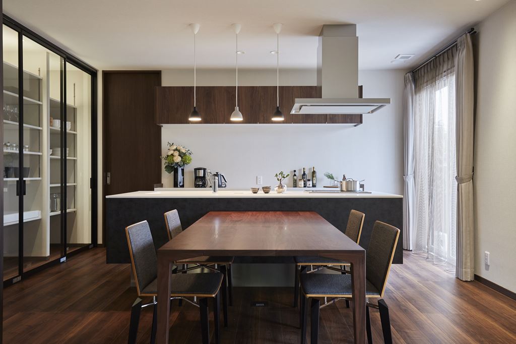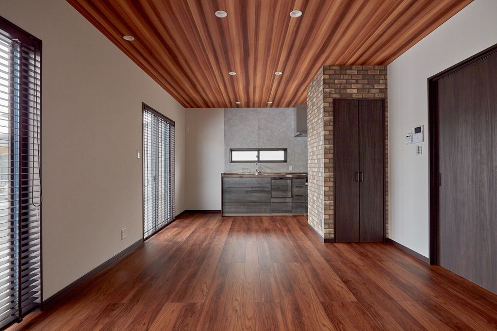 ウォールナット柄の落ち着いた床材は大人な雰囲気を出してくれます。