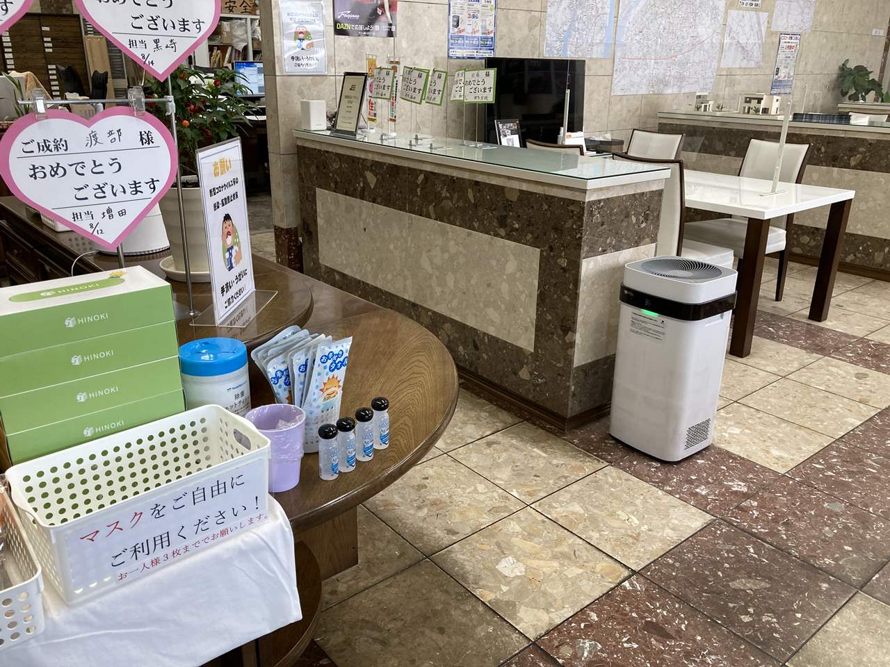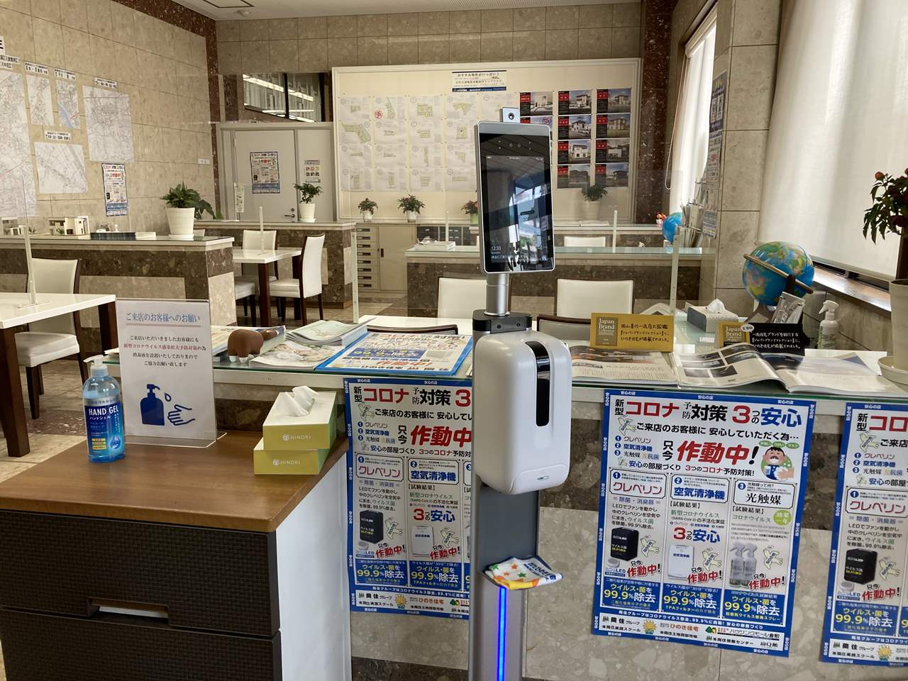 当社は、緊急事態宣言中は交代勤務で、感染予防の対策をとって完成見学会を完全予約制で対応中です。