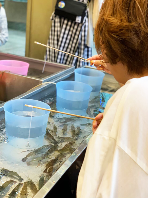 自分で海老を釣ったら目の前で焼いてくれて食べれます